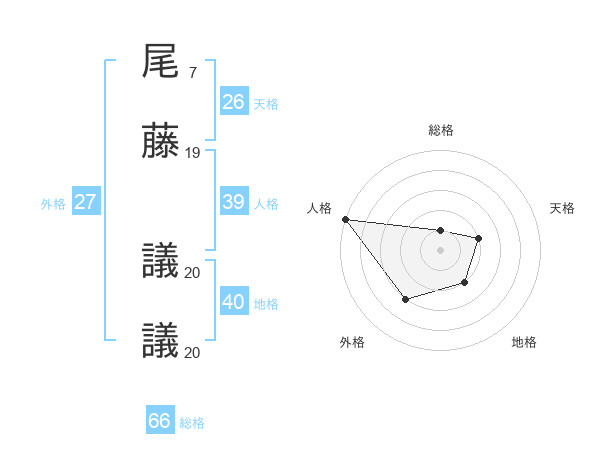 尾藤 議議さんの天格は26画の2点!