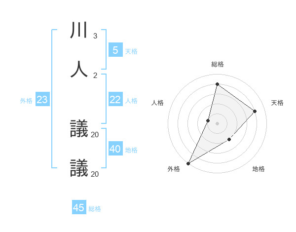 川人 議議さんの総格は45画の4点!