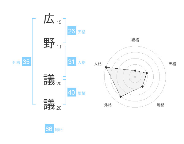 広野 議議さんの総格は66画の1点!