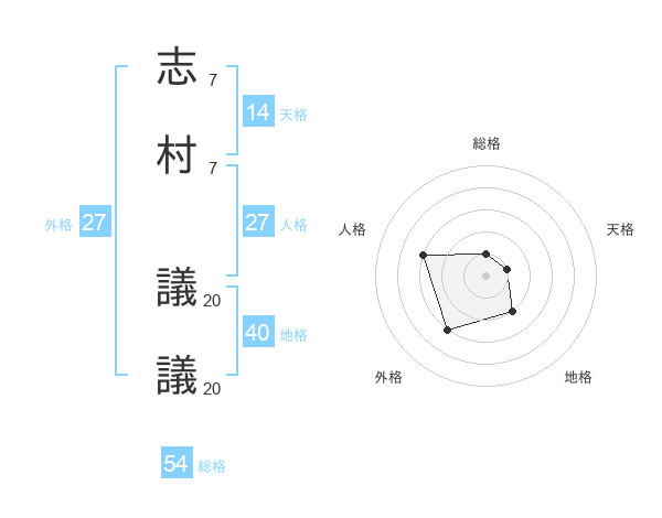 志村 議議さんの総格は54画の1点