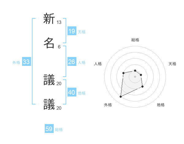 新名 議議さんの総格は59画の1点!