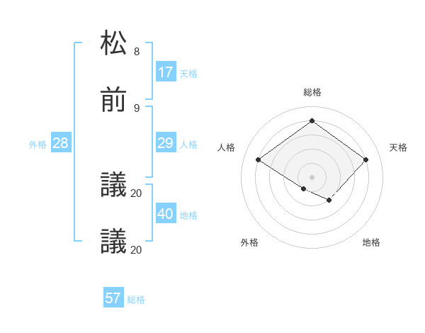 松前 議議さんの人格は29画の4点!