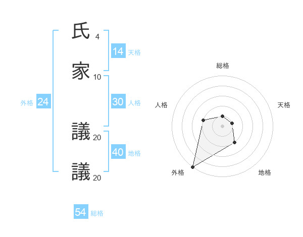 家系が持つ宿命的な運勢を表します。祖先から受け継いだ苗字ですので自分の力が及びません。家柄を象徴します。
