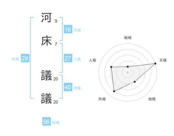 河床 議議さんの天格は16画の5点!