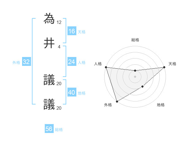 為井 議議さんの天格は16画の5点!