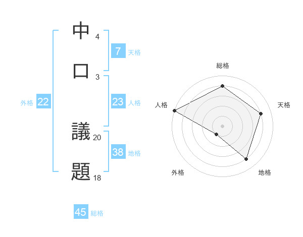 中口 議題さんの総格は45画の4点!