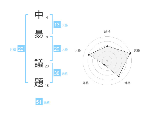 中昜 議題さんの総格は51画の3点!