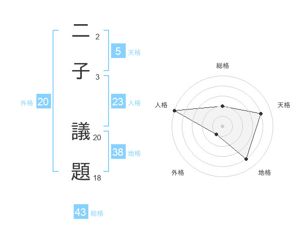 二子 議題さんの天格は5画の4点!
