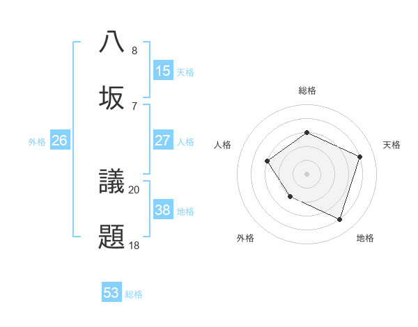 八坂 議題さんの総格は53画の3点!