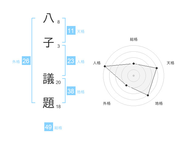 八子 議題さんの総格は49画の2点!
