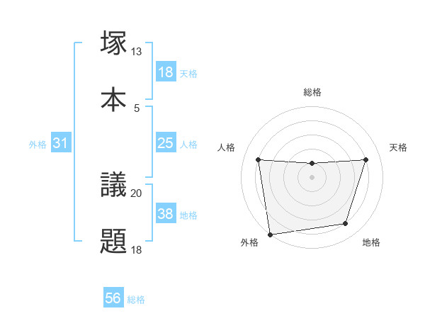 塚本 議題さんの総格は56画の1点!