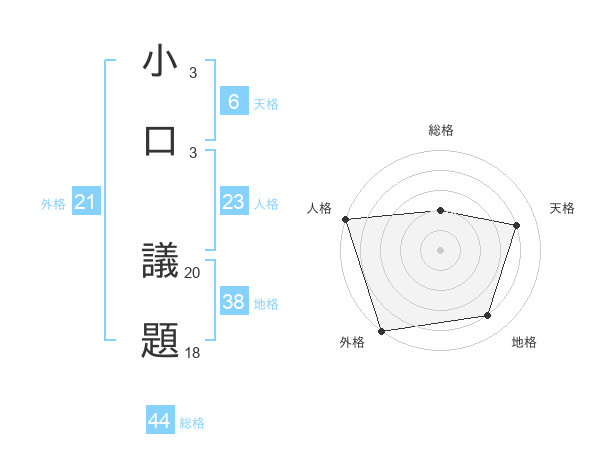 小口 議題さんの天格は6画の4点!
