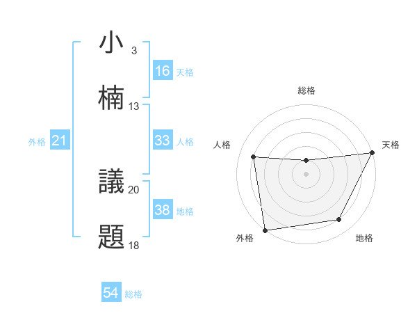小楠 議題さんの外格は21画の5点!