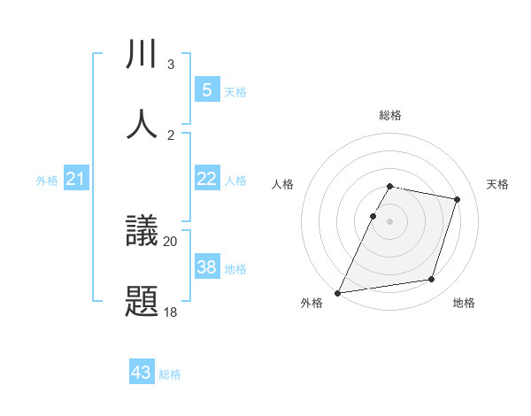 川人 議題さんの総格は43画の2点!