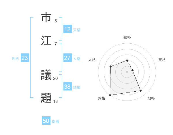 市江 議題さんの地格は38画の4点!