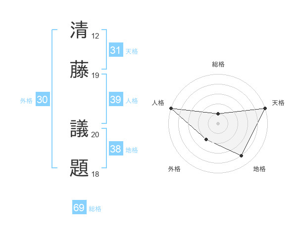 清藤 議題さんの総格は69画の1点!