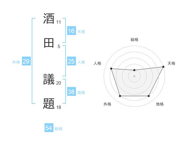 酒田 議題さんの総格は54画の1点!
