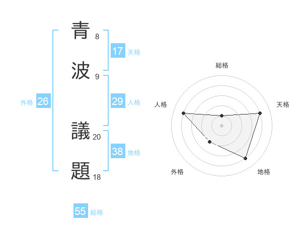 青波 議題さんの総格は55画の1点!
