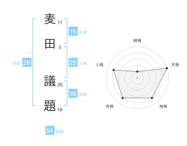 麦田 議題さんの天格は16画の5点!