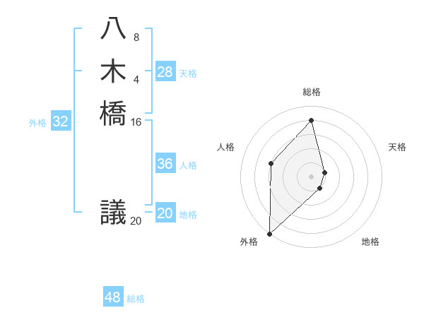 八木橋 議さんの総格は48画の4点!