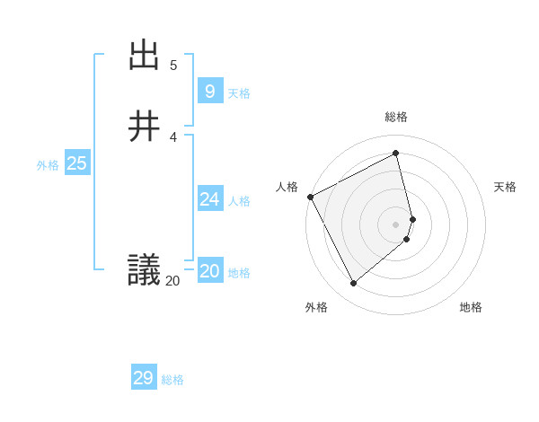 出井 議さんの総格は29画の4点!