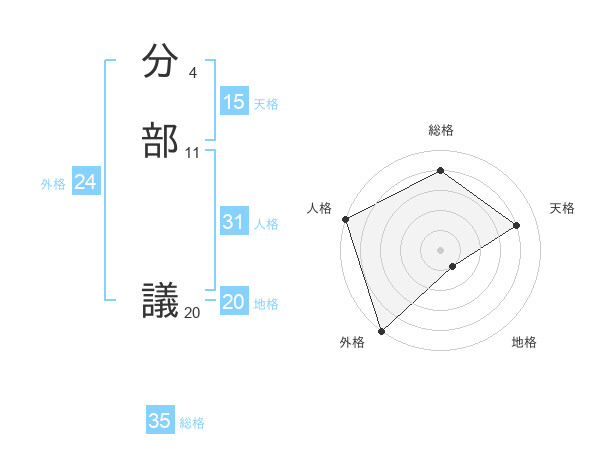 分部 議さんの総格は35画の4点!