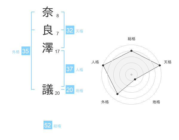 奈良澤 議さんの総格は52画の4点!
