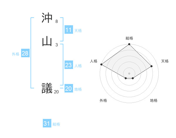 沖山 議さんの総格は31画の5点!