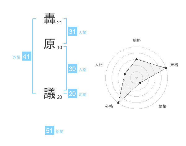 轟原 議さんの総格は51画の3点!