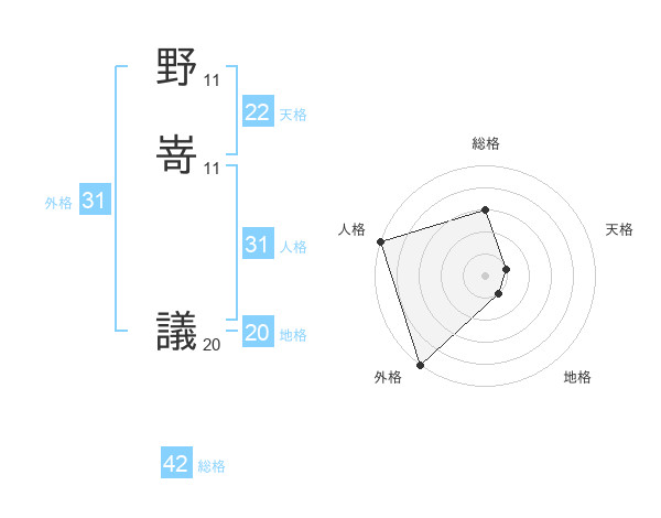 野嵜 議さんの外格は31画の5点!