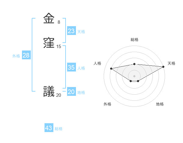 金窪 議さんの天格は23画の5点!