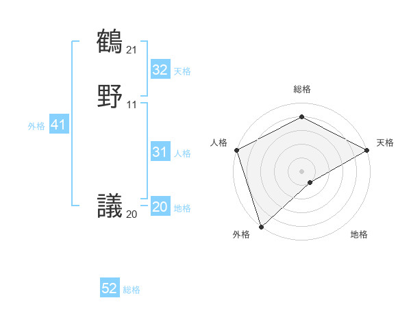 鶴野 議さんの天格は32画の5点!