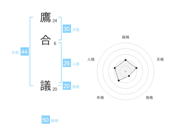 鷹合 議さんの総格は50画の2点!
