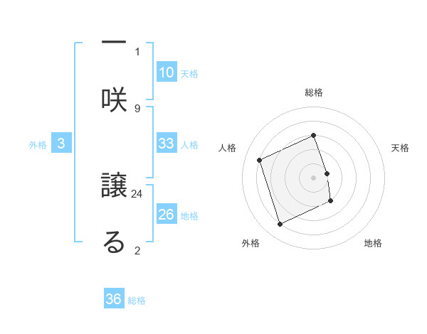 一咲 譲るさんを姓名の画数から五運を鑑定