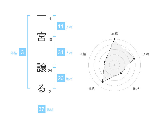 一宮 譲るさんの総格は37画の5点!