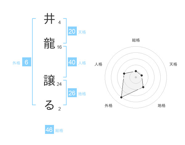 井龍 譲るさんを姓名の画数から五運を鑑定