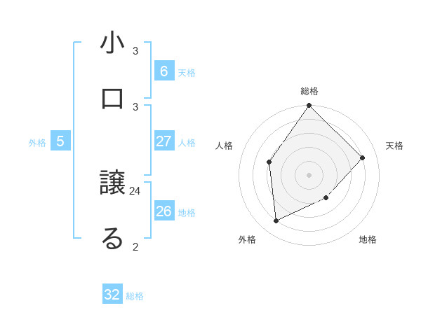 小口 譲るさんの総格は32画の5点!