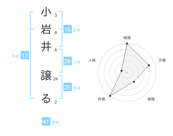 小岩井 譲るさんの外格は13画の5点!