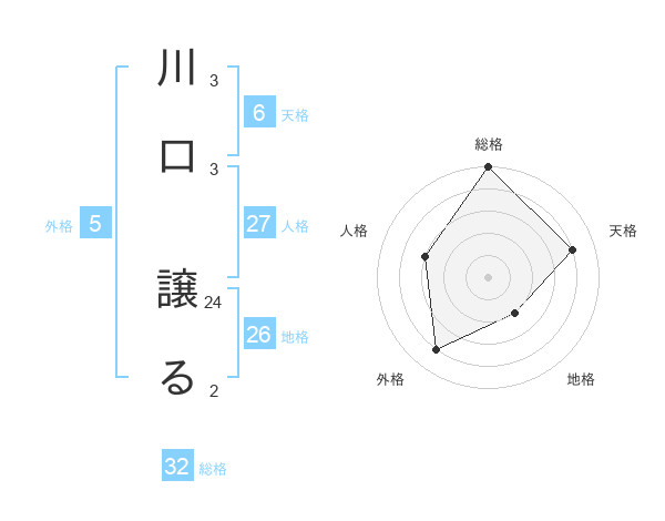 川口 譲るさんの総格は32画の5点!
