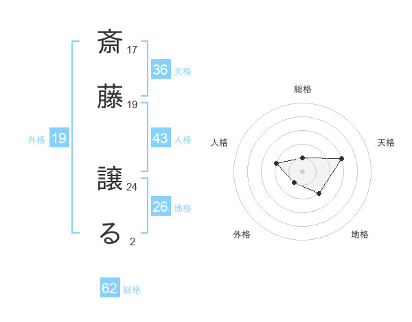 斎藤 譲るさんを姓名の画数から五運を鑑定