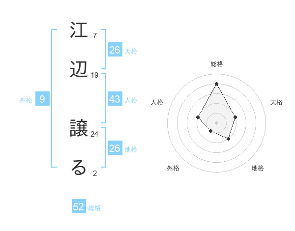 江辺 譲るさんの総格は52画の4点!