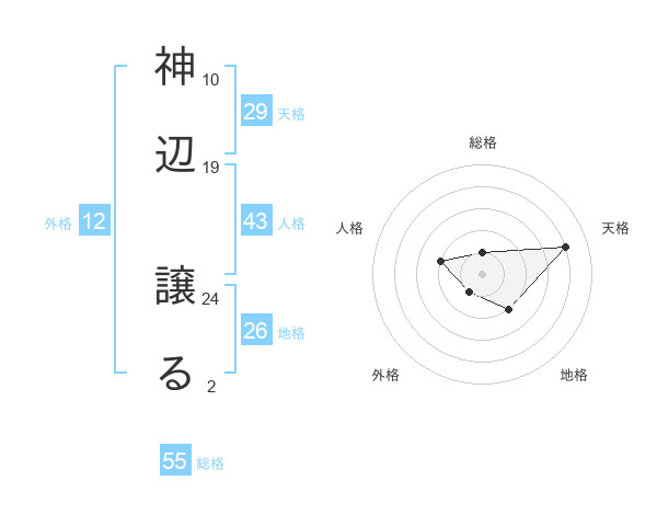 神辺 譲るさんの総格は55画の1点!