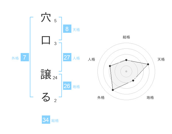 穴口 譲るさんの総格は34画の2点!