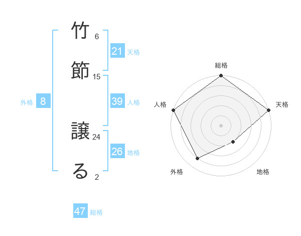 竹節 譲るさんの総格は47画の5点!