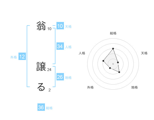 翁 譲るさんの総格は36画の3点!