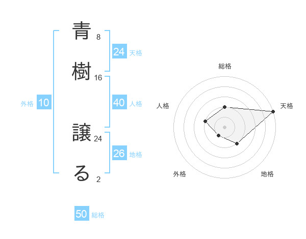 青樹 譲るさんの天格は24画の5点!