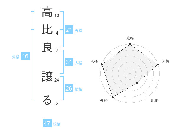 高比良 譲るさんを姓名の画数から五運を鑑定
