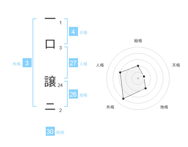 一口 譲ニさんの総格は30画の2点!