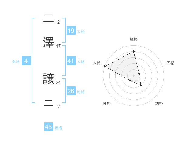 二澤 譲ニさんを姓名の画数から五運を鑑定