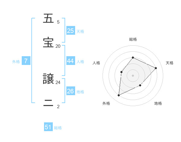 五宝 譲ニさんの総格は51画の3点!